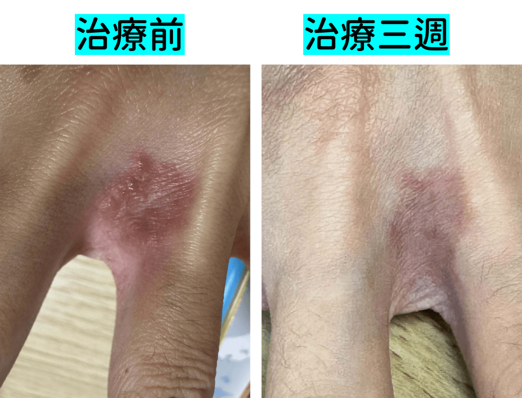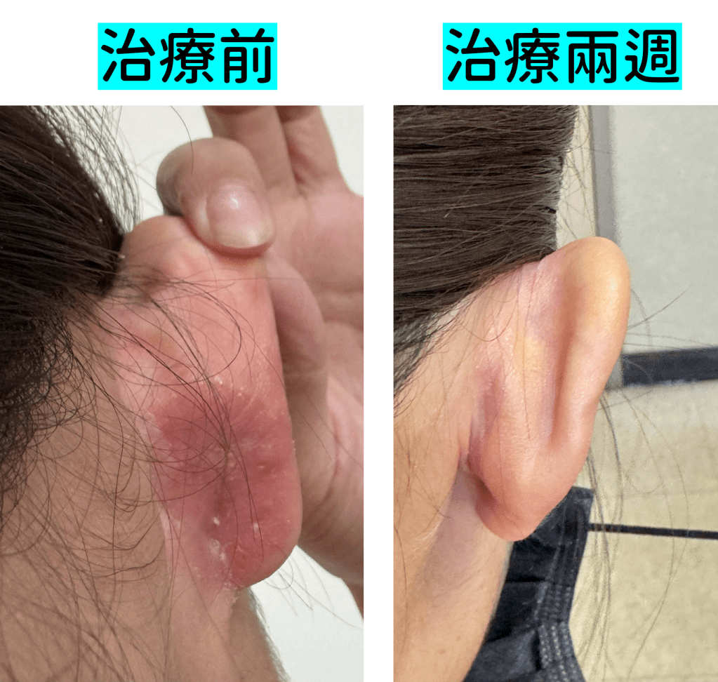 也感謝小Y的信任與支持❤️,我們在西藥維持原狀無加重劑量之下,加入中藥治療兩週後,耳後濕疹已無,三週後原本發作中的大塊濕疹已無發紅發癢感,質地已平且無濕感,剩餘小小點狀處有發癢感,這部分我們將持續調理。
